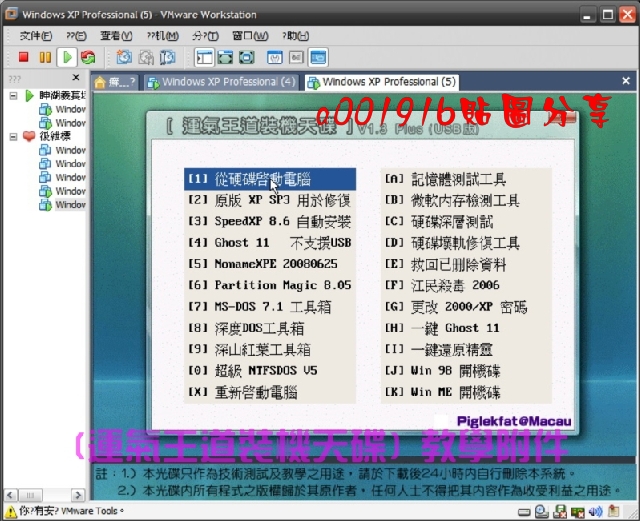 我把[運氣王道裝機天碟] Zuluck XP v1.3 - 20081018中的自動安裝GHOSTXP功能抽起,再把相關的GHO檔